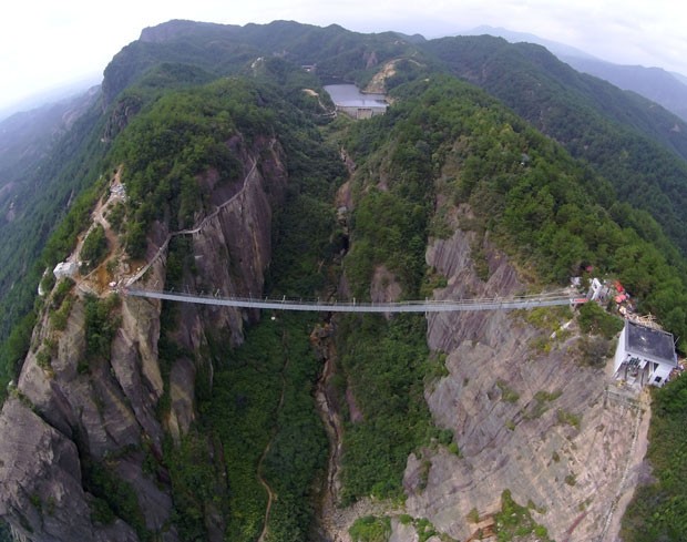 O Parque Geológico Nacional de Shiniuzhai, na província chinesa de Hunan, inaugurou recentemente uma atração turística que promete testar os nervos dos visitantes. O cânyon do parque, onde foram filmadas cenas do filme Avatar, agora ganhou a primeira ponte com piso de vidro suspensa do mundo, a 180 metros de altura. A estrutura leva o nome bem adequado de Haohan Qiao (A Ponte do homem corajoso, em chinês).