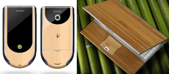 A tecnologia também se “curva” ao material: o notebook da Asus “Bamboo Series” é feito com capa de bambu, assim como o telefone celular “Chute“, do designer Michael Laut.