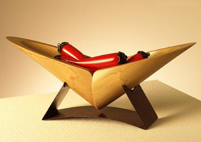 O brasileiro Paulo Bustamante da Bambuzeria também cria maravilhas com o material. Sua fruteira “Colibri” é das peças mais bonitas de sua linha.