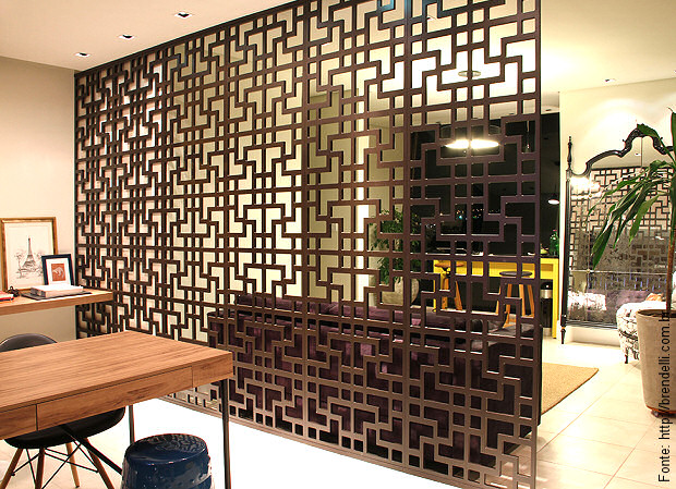 Para dividir ambientes, como por exemplo, um estar muito grande, ficam lindos quando assumem principalmente sua função decorativa. Feitos em qualquer material, dominam a cena e se tornam o destaque. Tal efeito pode ser utilizado também entre salas de estar e jantar e também entre estas e cozinhas muito abertas para a sala, quando os moradores não gostem do estilo “cozinha americana” e habitem uma casa com esta característica.
