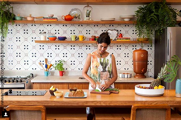 Nosso “Brique Lisser” anda fazendo sucesso: além de ter sido destaque no mês de julho na revista “Casa & Jardim“, também esteve presente no caderno “Morar Bem” do jornal “O Globo” há algumas semanas atrás por ser o revestimento na parede da sala da culinarista Bela Gil. Tudo por escolha da arquiteta Hana Lerner, que se encantou com o material, aprovado pela celebridade, e aplicado na reforma de sua cobertura no bairro do Leblon no Rio. Segundo Hana foi um desafio projetar um misto de ateliê e moradia em apenas 60 metros quadrados, onde a amiga pudesse cozinhar, gravar, receber alunos, cultivar uma horta e receber sua equipe com todo conforto, mas valeu a pena: o principal objetivo foi atingido que era que tivesse a personalidade de Bela.