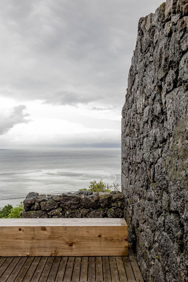 Casa é integrada à muralha de pedra. Projeto em ilha açoriana tira partido de ruínas