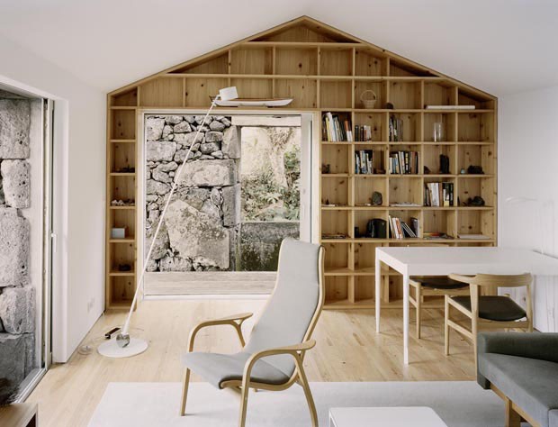 Em contraste com o exterior rústico, os interiores da casa na Ilha do Pico são contemporâneos e minimalistas, com marcenaria em madeira clara, paredes brancas e mobiliário de design escandinavo. Por esse trabalho, Inês e Miguel foram indicados para o Mies Van Der Rohe Award 2015, importante premiação de arquitetura contemporânea na Europa.