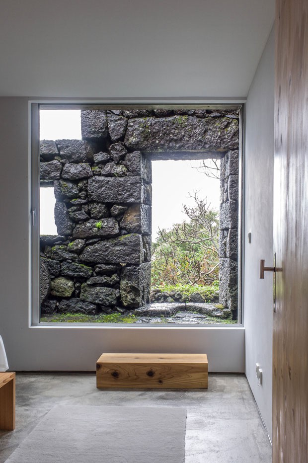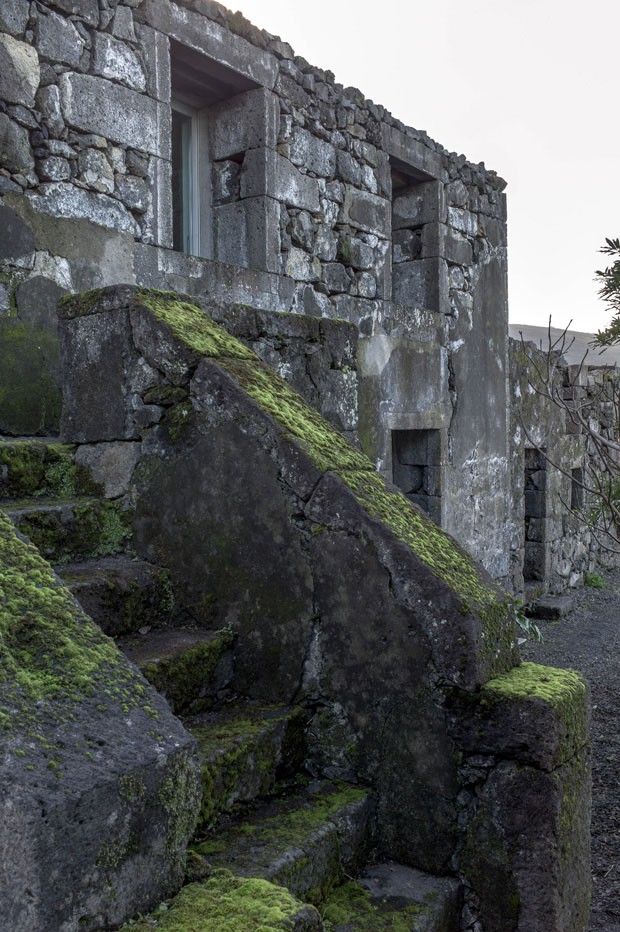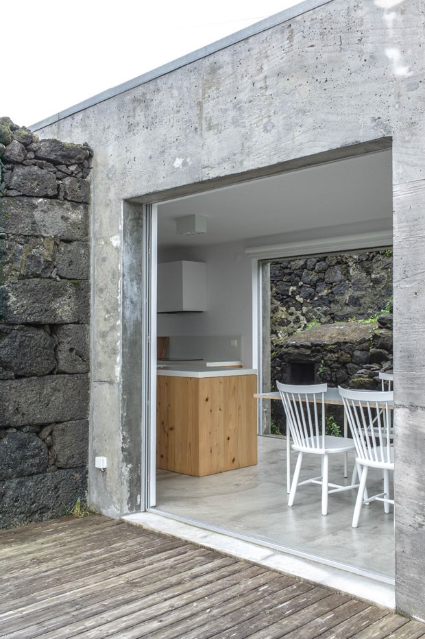 Casa projetada integrada a muralha de ruínas em ilha açoriana