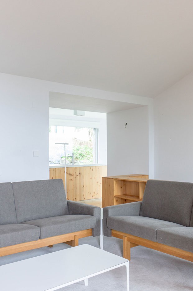 Em contraste com o exterior rústico, os interiores da casa na Ilha do Pico são contemporâneos e minimalistas, com marcenaria em madeira clara, paredes brancas e mobiliário de design escandinavo. Por esse trabalho, Inês e Miguel foram indicados para o Mies Van Der Rohe Award 2015, importante premiação de arquitetura contemporânea na Europa.