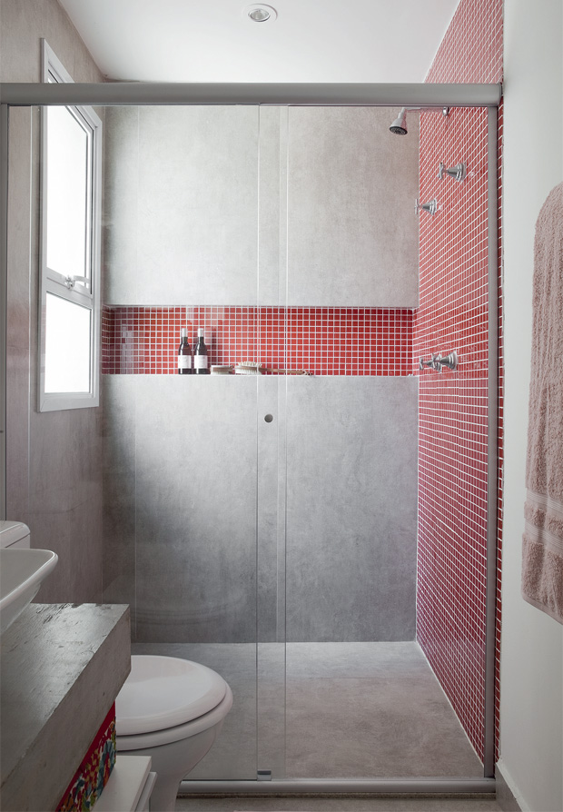 É possível ousar um pouco e escolher materiais que fujam do branco e do cinza, como na foto abaixo onde foi utilizado o revestimento Brique da Passeio.