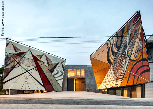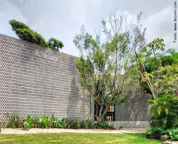 Um complexo de galeria, museu e áreas expositivas – incluindo aí espaço para enormes murais – foi criado pela arquiteta Frida Escobedo no entorno do que era a antiga residência estúdio do pintor David Alfaro Siqueiros na pequena cidade de Cuernavaca, no México. Artista plástico e ativista político, Siqueiros era muralista, e já havia criado a galeria de arte com direito à residência de artistas no terreno de sua própria casa na década de 1960. O trabalho da jovem arquiteta foi o de encerrar todo o complexo por trás de uma rede triangular de concreto: uma parede de blocos perfurados, bem ao estilo de nossos cobogós, foi construída no perímetro do complexo chamado de “La Tallera“, formando um cerco entorno dos edifícios que os agrupa, mas permitindo que a luz entre.