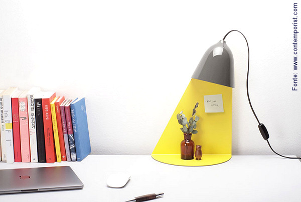 O design pode ser divertido e esta é uma das principais maneiras de chamar atenção sobre um novo produto. Por isso a percepção do designer Jong-Su Kim do estúdio coreano ilsangisang foi tão importante: ao criar uma prateleira misto de luminária – ou uma luminária com prateleira – foi certeira ao pintá-la de preto e amarelo, na região onde a luz deveria incidir sobre o objeto que ficaria sobre a base da prateleira. Deste modo nota-se com facilidade que ali está aquela chave, cartão, óculos, remédio ou seja lá o que for que desejamos com tanta necessidade – ou com tanta pressa, ou com tanto interesse – à noite, no dia a dia, ou na hora de sair – que não podemos ficar procurando sem fim. Esta é função do design e, com bom humor, tudo fica ainda mais atraente.