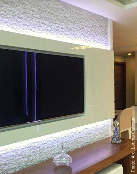 Linda sala do Ciclo Gestão e Projetos com execução de M Construções utilizando o “Steno Sedimentare” no tom “Puro” na parede da direita.