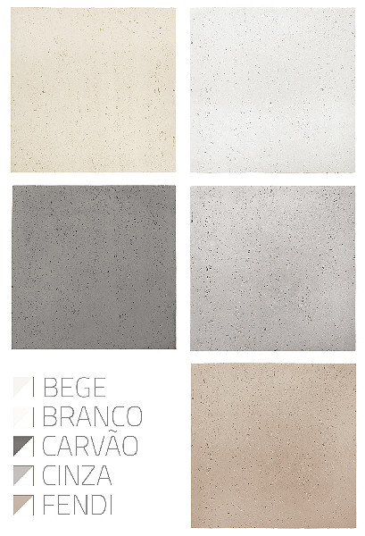 Disponível em cinco tonalidades bem atuais – bege, branco, fendi, carvão e cinza – possui peças ideais para acabamentos em bordas de piscinas tais como bordas externa e interna, “peito de pombo” e reta, além da grelha. Os tamanhos disponíveis também são um achado, bem dentro das tendências atuais: 100 x 100 cm e 50 x 50 cm, permitindo a criação de paginações especiais ou a cobertura com piso contínuo de grande dimensão das mais belas. Sua espessura de no máximo 1,5 cm também atrai muito a quem deseja revestir pisos em interiores com contrapisos com pouca profundidade. A caixa na medida de 50 x 50 cm conta com 4 peças e faz 1 metro quadrado, enquanto a caixa na medida 100 x 100 cm vem com uma peça. Trata-se de produto artesanal e que, portanto, tem acabamento, tamanho e tonalidade variáveis.