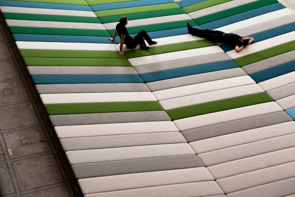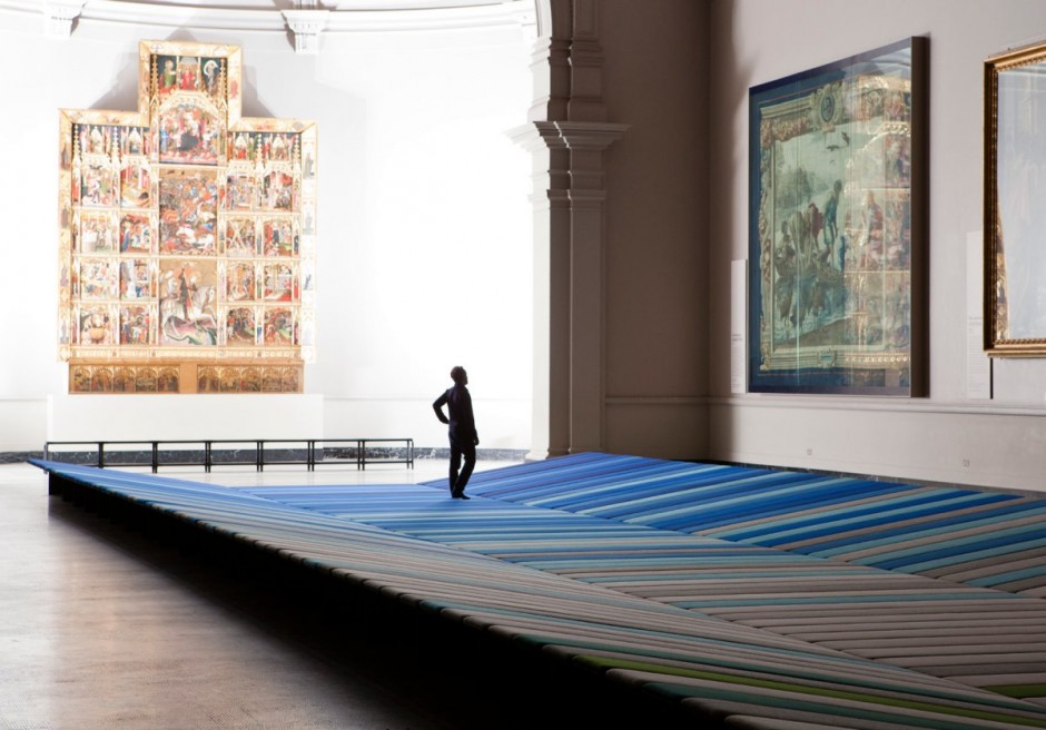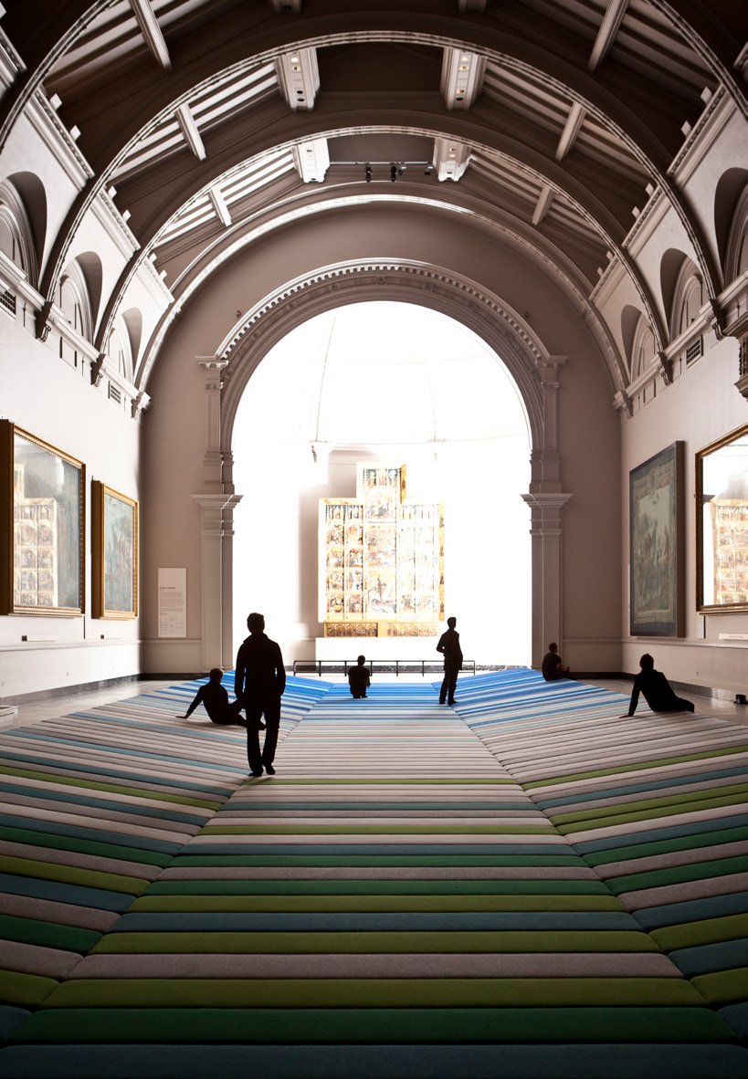 Ronan e Erwan Bouroullec em colaboração com a empresa têxtil Kvadrat, criaram esta instalação de “pisos” no Museu Victoria & Albert, em Londres.