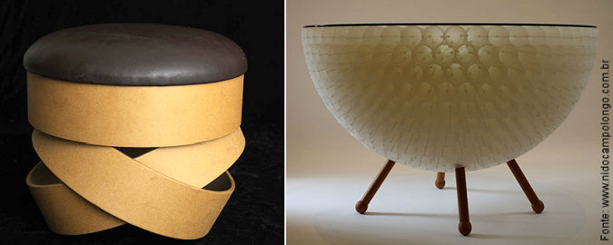 Dentre seus trabalhos mais conhecidos está o interior da loja francesa, que comercializa produtos brasileiros, “Pursuco“, cujo revestimento das paredes e mobiliário utilizado foi totalmente feito com papelão. Também são bastante conhecidos a mesa “Coni Poli Display“, feita em novelos de plástico, papel resinado e madeira, e o pufe “Balanço“, em papel resinado e couro vegetal. Mas as luminárias, estantes, biombos e banquetas de sua produção também fazem muito sucesso.