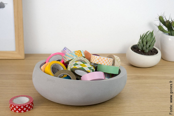É por isso que a linha “Brut” comercializado por uma cadeia francesa de boutiques para a casa foi bastante bem recebida: de pequenos porta velas a bowls para servir, os potes em concreto “bruto” – mas leve – topam tudo em casa e vêm com um belo esmaltado por dentro – bem colorido ou não – e facilitam o dia a dia de qualquer um. Obviamente que o principal é o bom acabamento dessas peças com jeitão primitivo, contrastando com um mundo tão tecnológico.