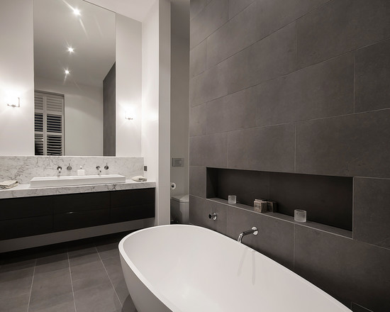 Quando o assunto é decoração da casa, é comum que os banheiros fiquem um pouco de lado. No entanto, um banheiro bem decorado pode dar uma cara um tanto quanto diferente para a sua casa e aqueles momentos para relaxar e pensar na vida ficarão bem mais agradáveis. Por isso um banheiro bem cuidado e decorado com bom gosto, não vai apenas valorizar o resto da sua casa, mas também vai fazer com que você se sinta bem em casa. Tons sóbrios são dominantes na arquitetura de banheiros contemporâneos. Selecionamos algumas imagens para inspirar na sua obra!