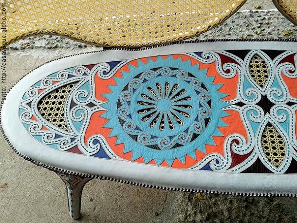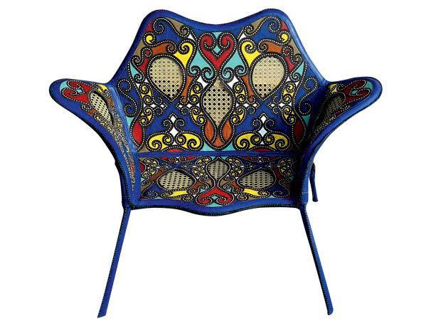 Composta inicialmente por cadeira, poltrona, sofá e espelho, produzidos em série limitada, a estrutura das peças da nova coleção foi “vestida” com o couro colorido. Nos assentos, recortes deixam entrever a trama da palhinha em pontos específicos – o que remonta à palha trançada popularizada no século 19, que dialoga com o couro ornamentado, famoso ao ser usado nas roupas de Lampião, Corisco e seus cangaceiros. Duas origens bastante populares que agora foram reunidas e serão apresentadas como artigo de luxo.
