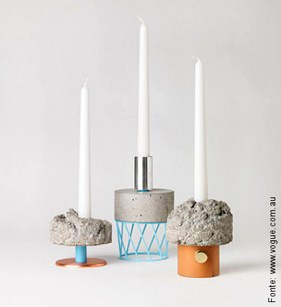 Simples castiçais que mesclam o concreto com outros materiais: a linha “Crowd candlesticks” de David Taylor nada mais é do que isto. Mas tem um charme…