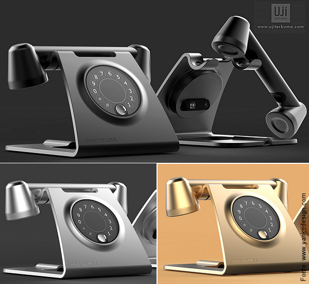 Vontade de voltar ao passado? Achamos que poucos têm, de fato, essa “vontade”, mas talvez a curiosidade por saber como eram as coisas no passado, no tempo de avôs e avós, quem sabe? Pois a tecnologia pode recuperar este passado e trazê-lo à realidade de forma até bastante melhorada. É o que fez o designer Uji Terkuma para a Dreyfuss: um telefone novinho, de mesa, inspirado no velho – e bom! – modelo desenhado por Henry Dreyfuss, o lendário modelo 1937 Bell 302, que atendeu muito bem à telefonia mundial durante décadas de telefonia por cabos e fios. Para quem não sabe, ele funcionava com o disco rotatório e não com teclas…