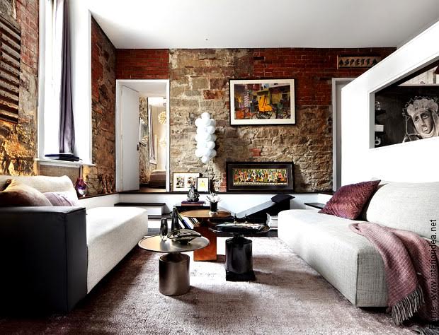 Em um espaço onde provavelmente os tijolinhos foram usados como estrutura das paredes, o ar sofisticado antigo é obtido pelo charme das paredes descascadas, pelo mobiliário contemporâneo e pelas cores dos complementos. Uma boa mistura de simplicidade e elegância.