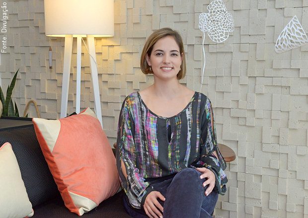 A arquiteta Larissa Soares em seu ambiente que teve nosso “Tibur Neo” como revestimento.