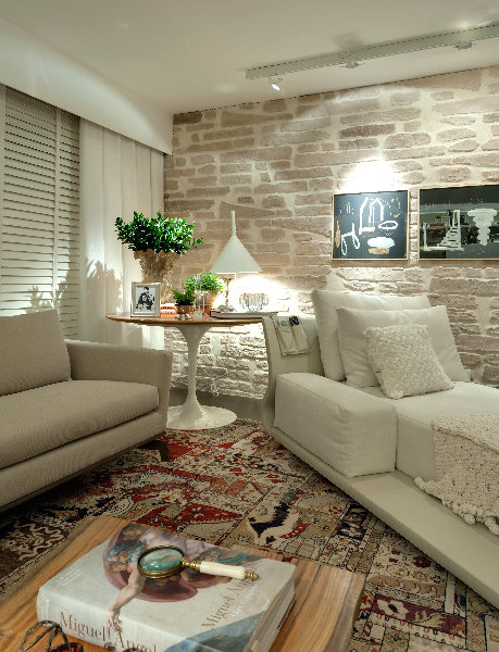 Telas do artista plástico goiano Marcelo Solá e uma escultura do artista plástico mineiro José Bento, além de um enorme tapete em patchwork, coroaram o ambiente que recebeu o prêmios de melhor studio e loft.