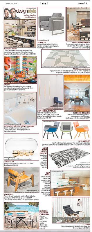 Importante: no último dia 25/04, Fábio e Jorge assinaram a coluna “Design Style” do Caderno Ela do Jornal O Globo daqui do Rio (veja abaixo). Ficamos muito felizes por termos sido destacados pelos parceiros. Obrigado!