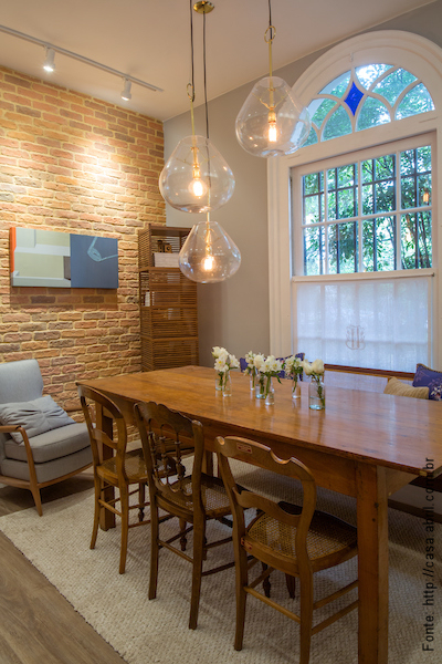 Repare na bela janela antiga que dá um toque a mais de charme na Sala de Almoço de Casa Cor Rio 2016.
