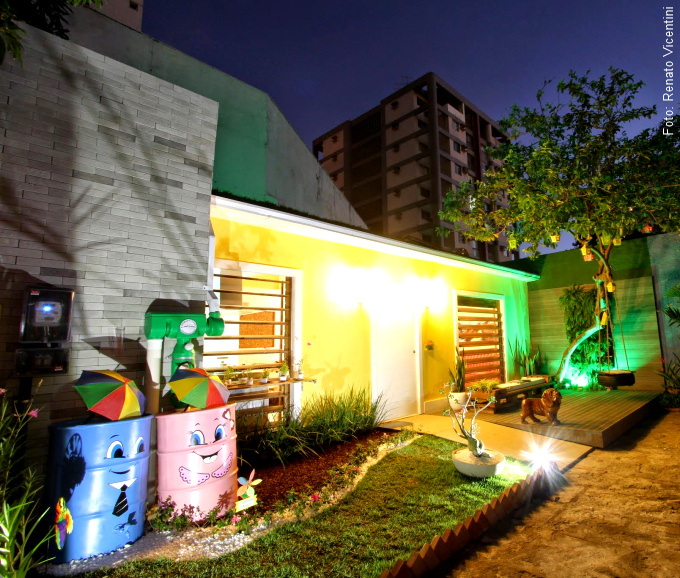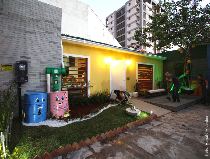 Contando com jardim, um belo interior e propostas de sustentabilidade, parte da fachada da Casa Sustentável dos Avós recebeu nosso “Brique Lisser” o que só a tornou mais interessante.