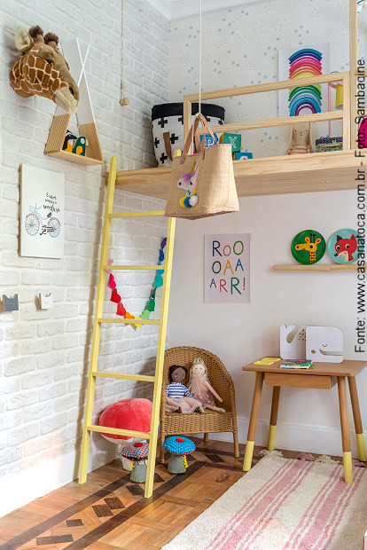 Uma mostra diferente é o mínimo que se pode dizer sobre a “Casa NaToca“: em sua segunda edição, o evento voltado para o design infantil reúne mais de 50 profissionais em 22 ambientes decorados em estilo lúdico em um casarão antigo localizado no Jardim Botânico. São 400 metros quadrados distribuídos por três andares, onde a ideia é privilegiar a presença da criança em cada cantinho, desenhando um visual solto, sob medida para agradar pais e filhos. O ar vintage do sobrado – que pertenceu à mesma família durante décadas e nunca passou por reformas – inspirou os profissionais a preservar vários dos revestimentos originais, como o piso de taco de peroba, ladrilhos hidráulicos, sancas no teto e tijolos maciços nas paredes.