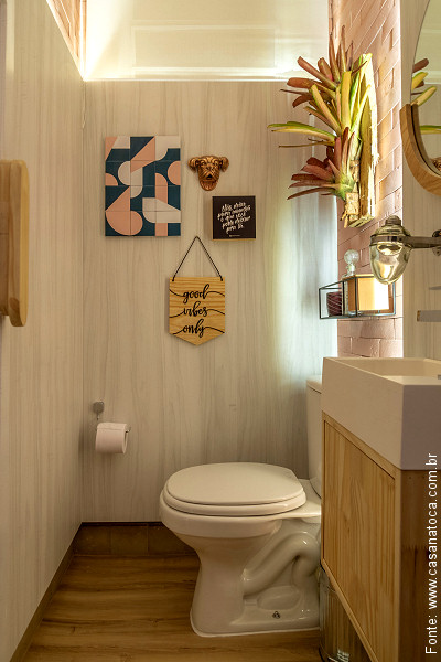 Um primeiro visual do “Espaço da Família” e “Banheiro Público” de Elise e Evelyn Drummond na mostra “Casa NaToca“. Repare nosso “Brique Lisser” no tom “Rosé” na parede da casinha do canto de leitura, ao fundo.