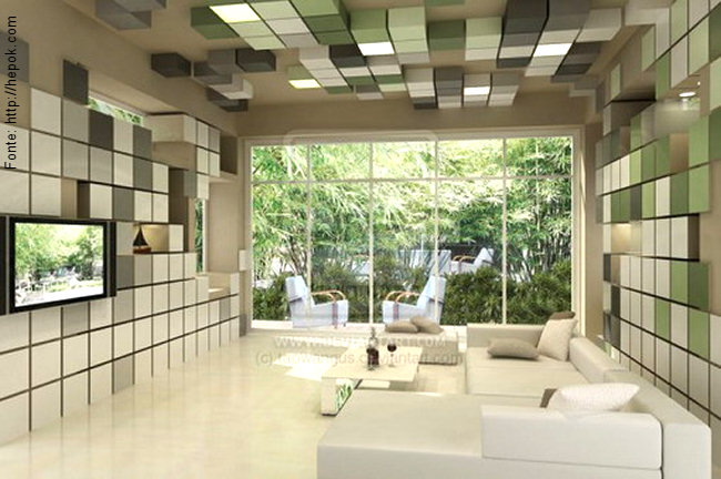 Daí que, na arquitetura e nos interiores, também foi muito fácil pensar neles como “objetos”. Construções modulares se aproveitaram do conceito para serem criadas. O design de superfície nos trouxe inúmeros padrões “em pixels” para papeis de parede, tapetes, tecidos para revestimento, etc. Como um dos seus atributos principais é a COR, foi fácil perceber o conceito e como torná-lo utilizável nestes campos do conhecimento.