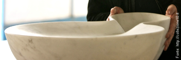 Destacamos em particular Rivo por ser uma das mais encantadoras: mais que um utilitário, na verdade uma escultura. Como descreve seu release: “um fino estreitamento, que une e divide duas gotas grandes, uma das quais oca, torna fluido o movimento da escultura, enquanto a evanescência orgânica da forma confere uma consistência impalpável à dureza do mármore. Rivo nasceu da explosão tridimensional do sinal de riacho que transborda da piscina e vive na vitalidade da superfície e dos volumes de material, roubando da água sua transparência“. Difícil pôr em palavras a beleza arredondada de suas formas, mas fácil observá-la nas imagens. É peça para se ter em lugar exclusivo quase como um troféu e compartilhá-la com amigos mais próximos pelo prazer da beleza em si.