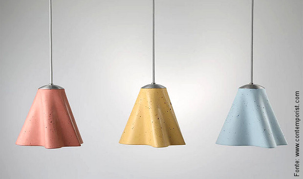 Com um aspecto de “vestido de dança”, a luminária pendente “Stem“, é toda moldada em concreto em várias cores. A impressão de movimento é imediata, portanto, já que toda a peça contribui para a sensação. Trata-se de uma outra coleção da Ardoma Design e também assume o desafio do uso do concreto.