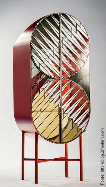 Um dos móveis desenhados pela dupla Urquiola-Pepe com portas em vitral.