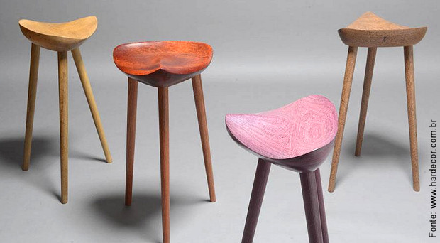 Pode ser fabricado em diversas madeiras maciças tropicais: “Roxinho”, “Pau Rainha”, ‘Sucupira’ e ‘Peroba do Campo de demolição’. É uma peça de marcenaria de primeira, feita à mão, “alegre e genuíno!” como diz o site de “O Ebanista“, nome que o designer encontrou para sua empresa. Seu assento é de um refinamento que lembra de fato mais uma escultura do que um trabalho de simples marcenaria. Belo e confortável, sua forma e sua altura favorecem o bom apoio da bacia. É resultado de uma minuciosa elaboração manual e de um acabamento ultra sofisticado. E como o mesmo site destaca “sentar-se nele é uma experiência super estimulante“.