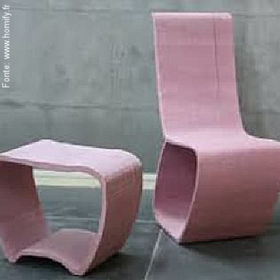 Dentre suas cadeiras destacamos “Pauline“: tanto pela forma, quanto pela singeleza do toque do rosa empregado no acabamento, nos pareceu bem delicada chamando atenção para o oposto das características mais acentuadas do material. Fica um exemplo de como é “camaleônica” esta matéria prima…