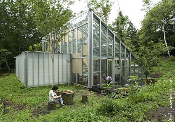 Esta foi a ideia do arquiteto Hiroshi Iguchi que praticamente criou uma estufa para plantas e a “adaptou” para uso como habitação. Parte do projeto japonês “Quinto Mundo” – que visa promover a arquitetura eco amigável e sustentável – a casa inclui vários elementos naturais e os combina no design de seu interior. Materiais quentes e naturais foram privilegiados, tais como madeira para o piso, painéis japoneses tradicionais para dividir ambientes, uma cobertura de lona branca para proteger o interior do calor excessivo e, é claro, muita luz natural como em qualquer estufa para plantas.