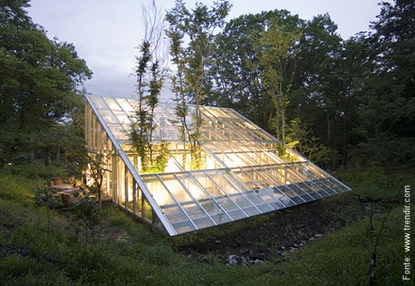 Olhando de frente, uma verdadeira estufa: a casa “camuflada”.
